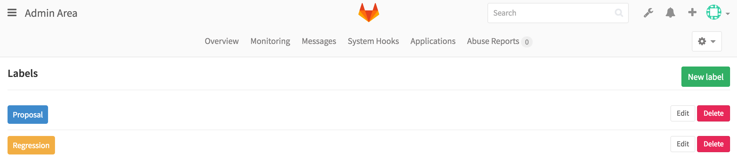 Labels that are created within the Labels view on the Admin Dashboard will be automatically added to each new project.